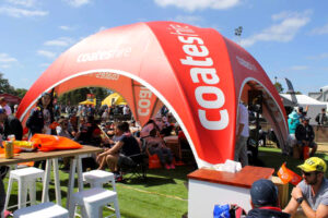 - Interactive brand activations: Encourage fan engagement with sponsor booths, games, and hands-on experiences under customized tent structures.