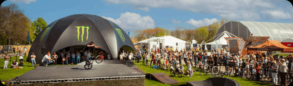 At Creative Structures, we offer an extensive range of tents, from compact Loungers (17–26 m²) to spacious Hexadomes that can host large groups in areas up to 175 m². Our Crossover and Hexadome structures are especially popular for sports events due to their bold design, sturdy engineering, and ease of setup.