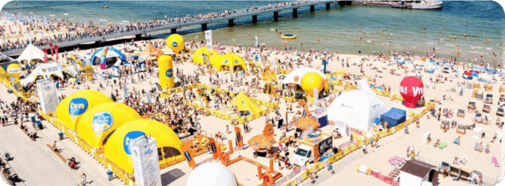 Distinctive round shapes and tubular frames create a recognizable architectural statement. Each beach gazebo, vip tent, or bar tent can be fully customized: